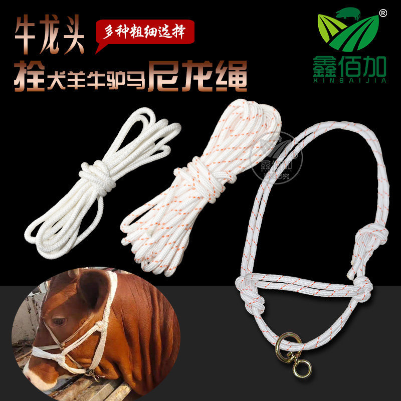牛笼头使用一根5米尼龙绳编织而成,再加上一根缰绳,人就可以控制住牛,方便实用