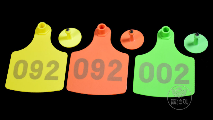 参数:黄、橙、绿三色,牛用普通大号带字耳标牌(1-100号)