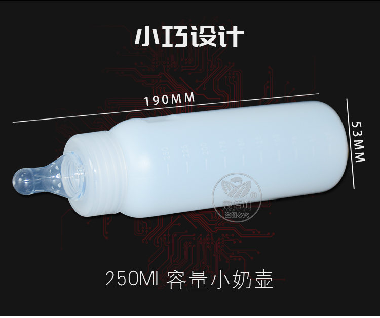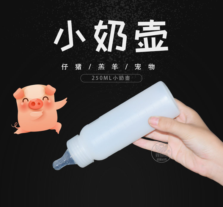 250毫升奶壶产品作用:主要用于羊、狗、猪等宠物人工喂奶使用。
