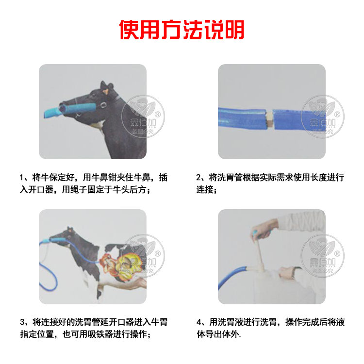 大号洗胃管适用于约900斤以上的大牛,小号洗胃管适用于约400-900斤的牛