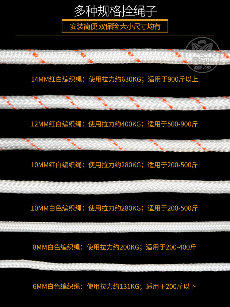 直径约12mm;使用拉力约400KG;适用于500-900斤