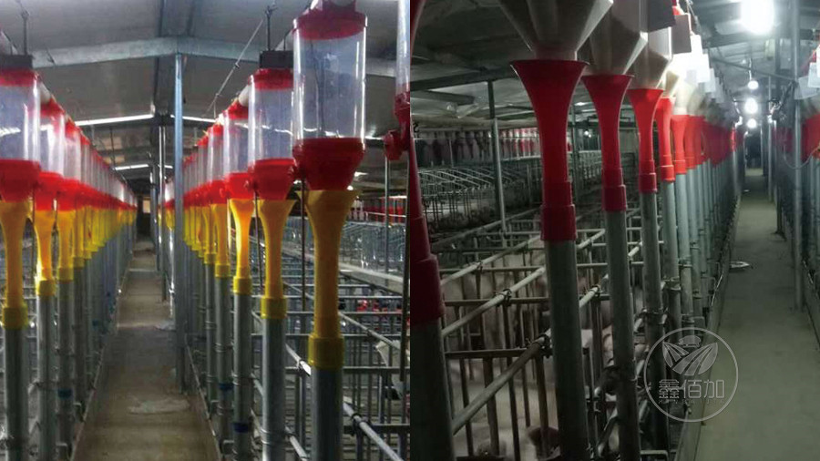 方形母猪定量桶因为设计,以免桶内饲料不易受污染,母猪在吃料的时候容易产生哈气,而哈气会顺着下料管升到定量桶内。