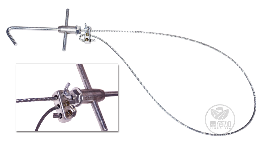 金属套猪器采用约4mm不锈钢钢丝绳,把手全金属镀络,坚固好用,耐拉效果好,不易断,可以长期使用;