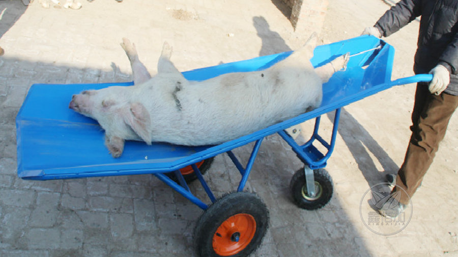 三轮式死猪推车实际拉猪展示