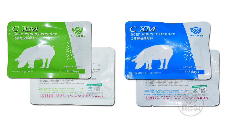 德州鑫佰加畜牧设备有限公司推出来猪精稀释粉产品,产品分类中效约3-5天、中长效约4-7天、长效约7-14天三种。其中中效约3-5天包装为50克一包包装,内包含干燥剂和稀释粉单独包装,干燥剂主要用于稀释粉存放的时候一面受潮,置于阴凉干燥处就可以。