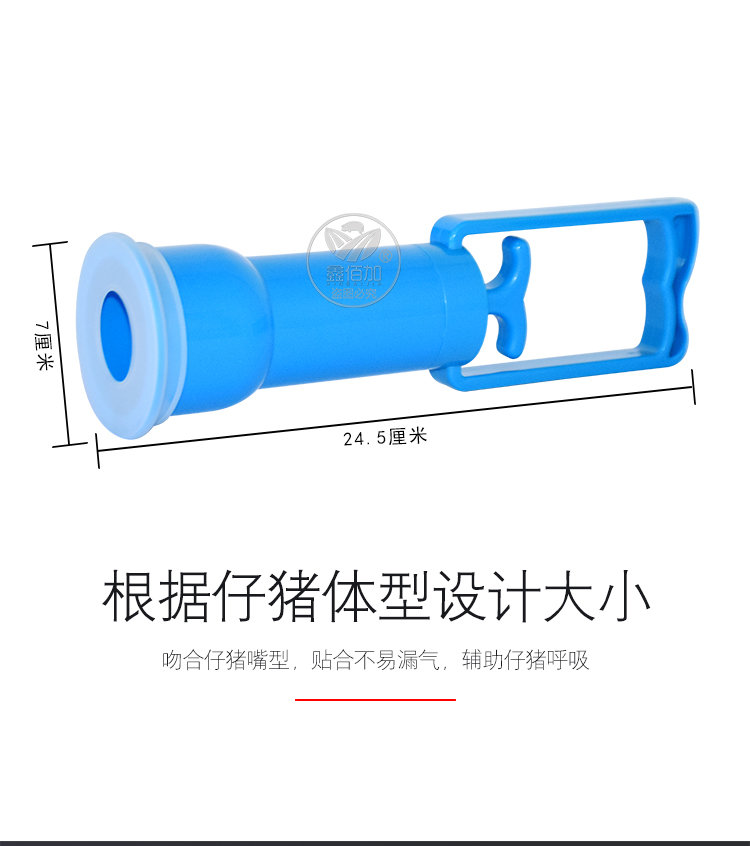 3.仔猪出生后,姜呼吸机前端的胶套中空部分套猪仔猪拱嘴,手持拉手,拉到底,反复几次,即可达到效果