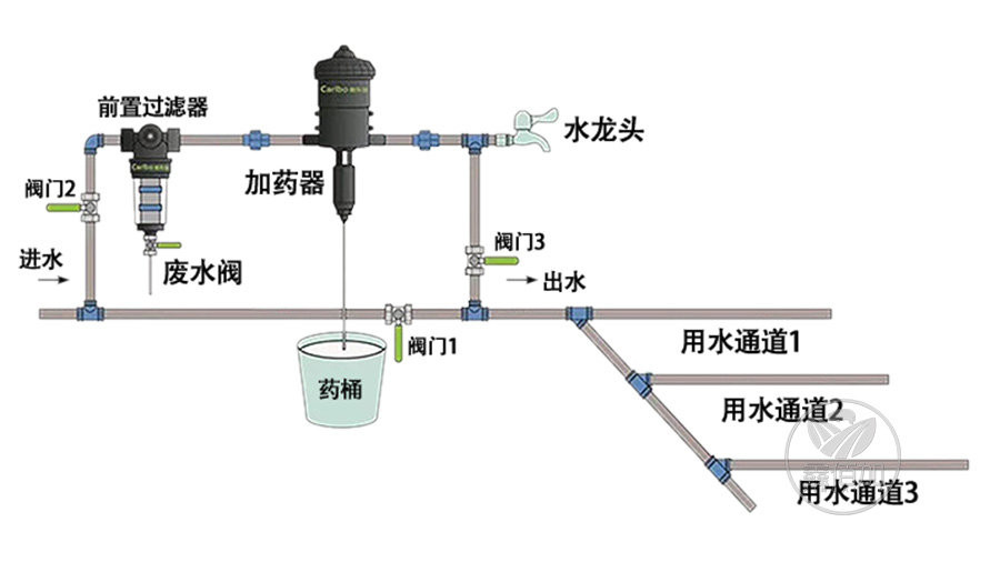 1、加药器要单独一条水路安装,非使用情况下可以用另外一条水路供水,以免加药器使用时间长造成损坏;